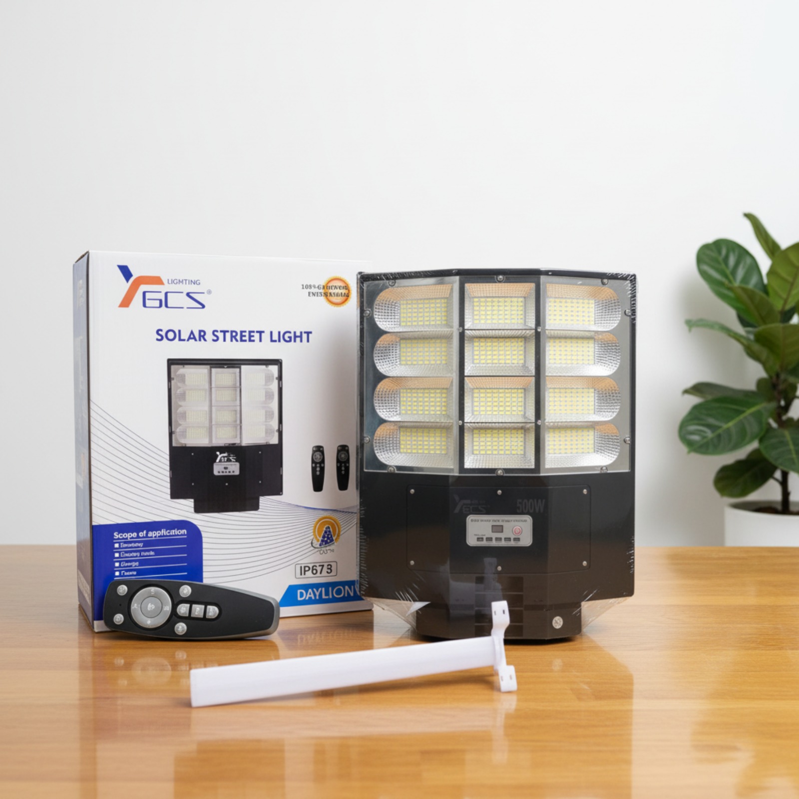 ⚙️ Instalación: Incluye Soporte/Brazo de 50 cm y tornillos de anclaje para montaje en poste o pared.
