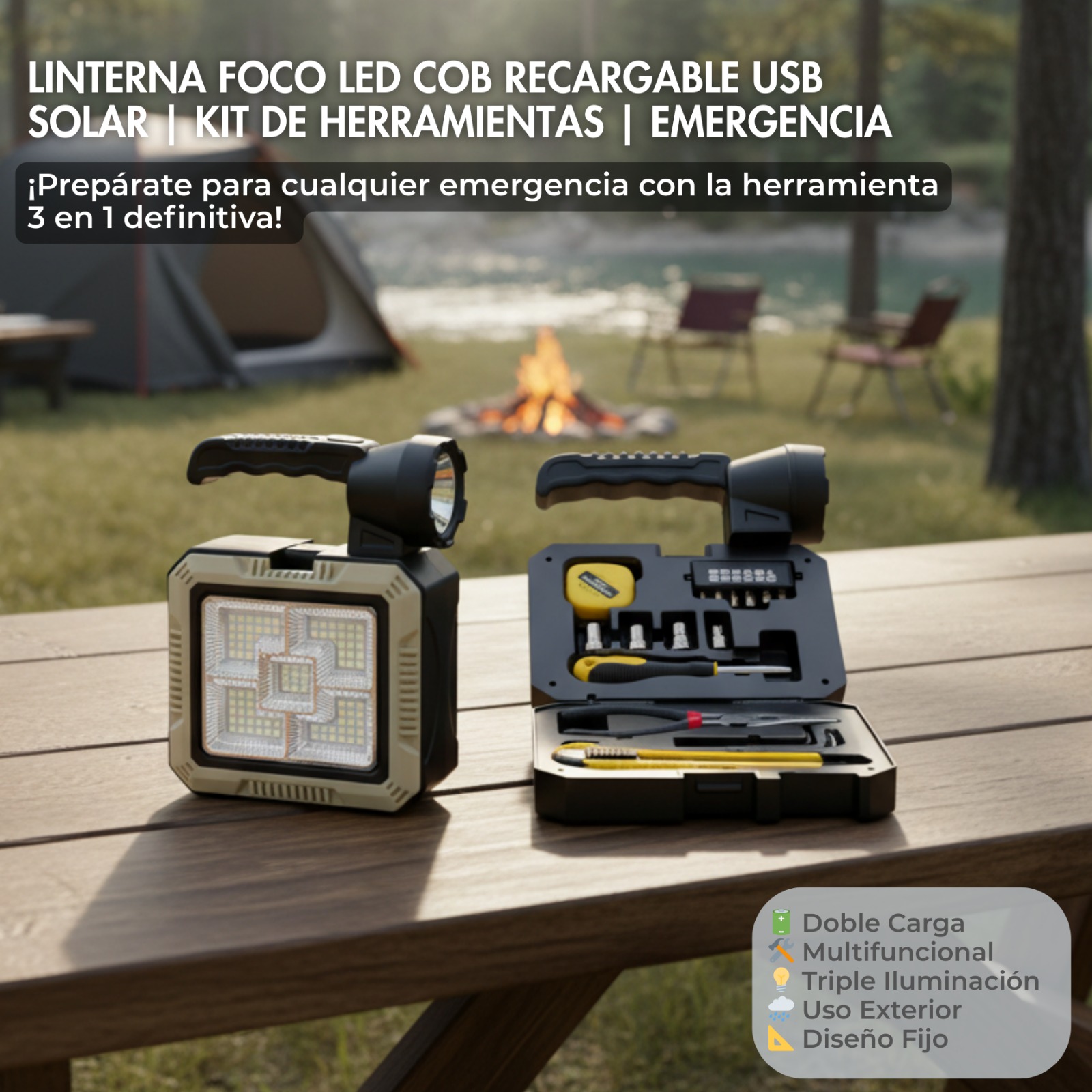 🏕️ Ideal para: Camping, senderismo, pesca, reparaciones de vehículos y trabajo nocturno.