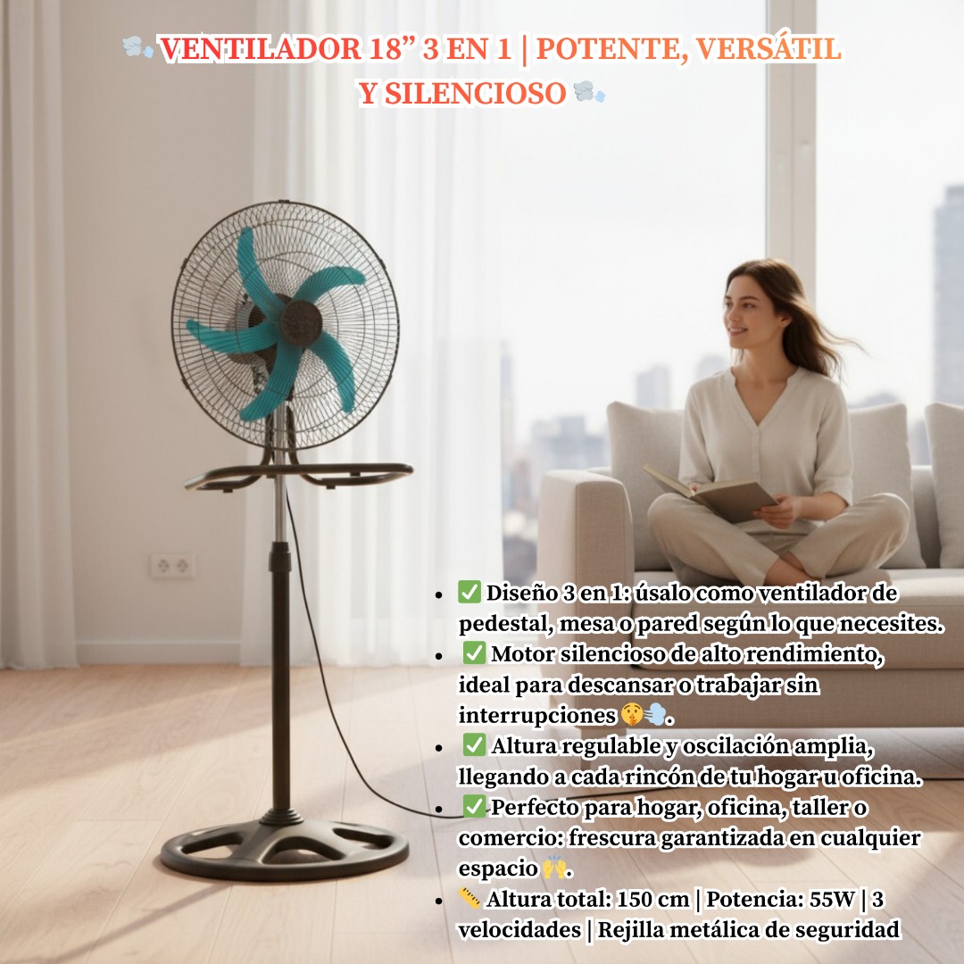 Ventilador 18” 3 en 1 | Potente, Versátil y Silencioso 🌬️